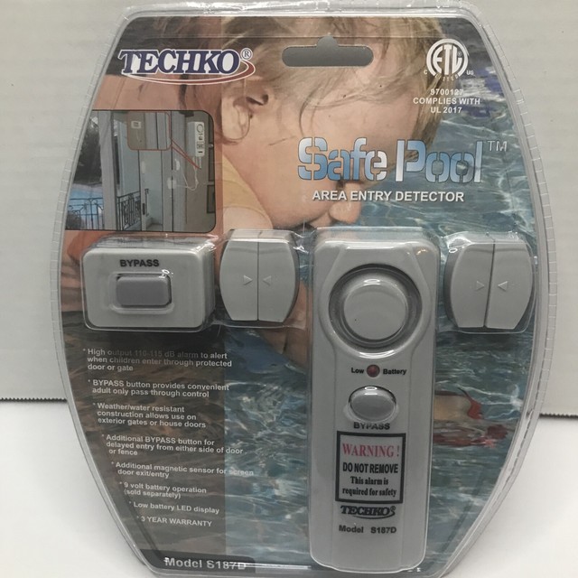 Techko s187d safe pool area entry detector provides 24/7 alarm protection on safety gates and doors that lead entrance to a swimming pool area. Techko s187d safe pool alarm. The techko s187 safe pool alarm is designed to monitor a gate, door, window or other entryway to you pool area. Swimming pool alarm techko safe area entry detector door gate bypass magnet kid. : united states , brand: