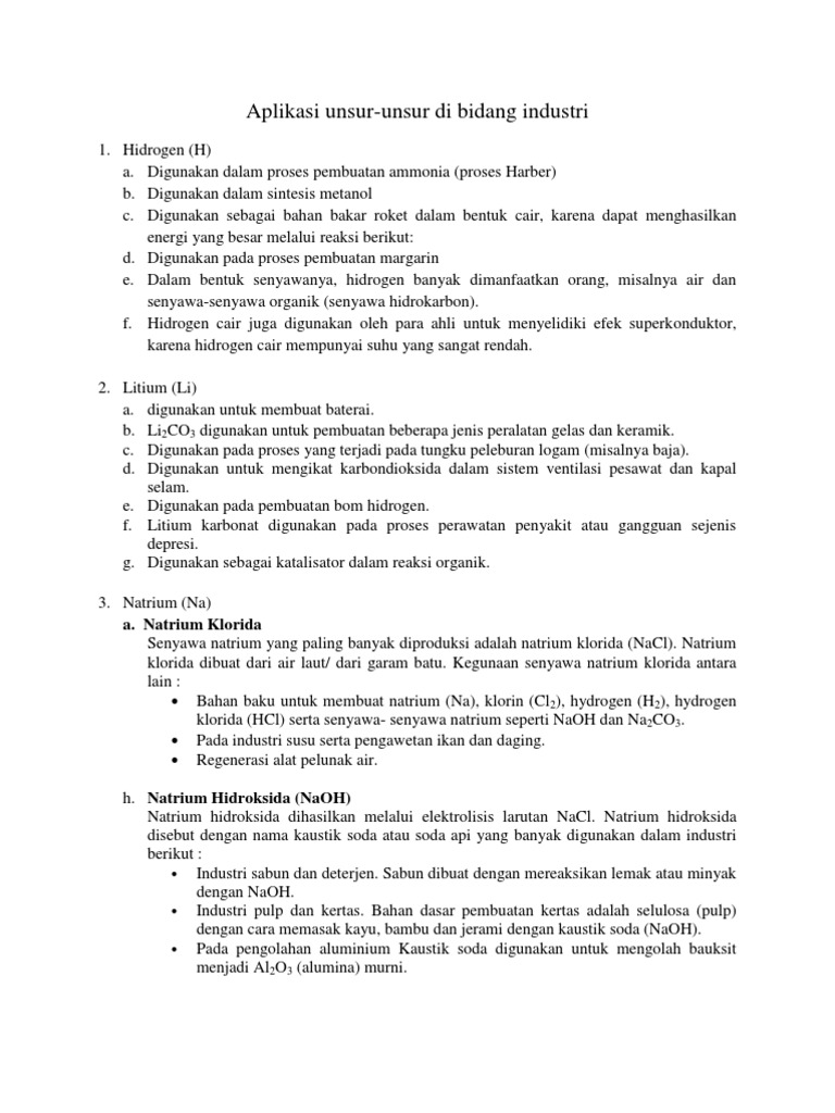 Natrium klorida senyawa natrium yang paling banyak diproduksi adalah natrium klorida (nacl). Natrium sulfat merupakan garam natrium yang berasal dari asal sulfur, di dalam bentuk anhidratnya senyawa ini berbentuk padat kristal putih natrium sulfat ini menjadi salah satu komoditas bahan kimia utama yang banyak digunakan di dalam pembuatan deterjen atau pembuatan pulp kertas. Digunakan untuk pembuat larutan baku sekunder,v sebagai anti klor (untuk mengganti sisa klor yang dapat merusak sisa tekstil). Dalam prosesnya amoniium klorida tampak menyublim pada pemanasan. Salah satu pemanfaatan asam klorida adalah dalam bidang industri pengolahan logam, di mana asam klorida merupakan asam anorganik kuat yang mampu. Digunakan untuk keperluan industri seperti dalam pembuatan sabun. Makanan, metil jingga, asam klorida (hcl) ketepatan konsentrasi naoh dalam pembuatan sabun sangat penting sehingga menghasilkan sabun yang memenuhi syarat. Natrium klorida dibuat dari air laut/ dari garam batu. Tuliskan satu persamaan perkataan untuk proses saponifikasi yang terlibat dalam. Natrium klorida juga berinteraksi dengan komponen mayor (seperti protein dan lemak) dalam bahan makanan, sehingga berefek pada tekstur dan reaksi kimiawi selama proses pembuatan makanan. Karena natrium bereaksi keras dengan udara, ia tidak ditemukan secara bebas di alam. Fungsi sodium klorida adalah untuk mengatur jumlah air dalam tubuh, memiliki peran dalam impuls saraf, dan kontraksi otot. Dewasa ini sabun dibuat praktis sama dengan teknik yang digunakan pada zaman yang lampau.