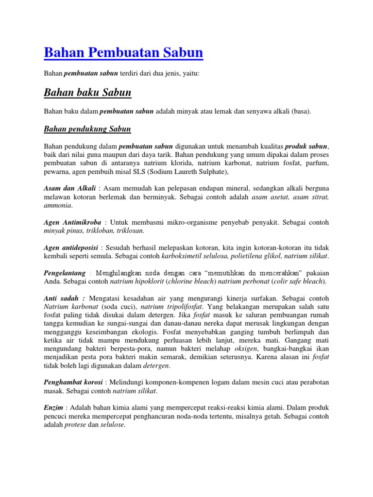 Kegunaan Senyawa Natrium from imgv2-2-f.scribdassets.com Dalam pembuatan sabun, minyak sawit dapat digunakan dalam berbagai macam bentuk, seperti crude palm oil, rbd palm oil (minyak sawit yang telah dibleaching dan dideorisasi), crude palm falty acid dan asam lemak sawit yang telah didestilasi. Natrium dalam bentuk logam sangat penting dalam pembuatan ester dan dalam pembuatan senyawa organik. Digunakan untuk keperluan industri seperti dalam pembuatan sabun. Fungsi naoh dalam pembuatan sabun adalah sebagai bahan baku utama selain minyak atau lemak. Pada daging, garam mengaktifkan protein untuk mengikat lebih banyak komponen air sehingga. Apakah fungsi natrium klorida dalam eksperimen ini? Pembuatan natrium karboksimetil selulosa (na cmc) dari batang rumput gajah. Pembuatan sabun gel ini dilakukan dengan proses penambahan gelatin dalam pembuatan shower gel yang mana gelatin disini berfungsi sebagai bahan pengental.