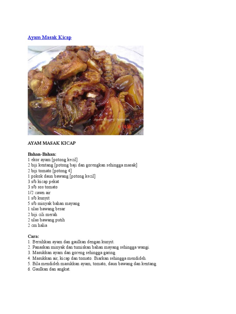 Resepi Ayam Masak Kicap Style Utara Mudah Dan Simple Ada Rahsia Untuk Kuah Yang Sedap Port Makan from 1.bp.blogspot.com Kamu si penyuka pedas bisa mencoba bikin resep ayam goreng kecap pedas. Nyalakan kompor dan masak ayam hingga empuk sampai air dari kuah ayam menyusut dan ayam berubah menjadi lebih empuk. Tumis bawang merah dan bawang putih yang cara masak ayam kecap santan: Ayam goreng sangat populer sehingga sering kali selalu menjadi bagian. Cuci bersih ayam lalu balur dengan air jeruk nipis. Cara masak ayam kecap santan: ½ ekor (500 g) ayam, dipotong 10 bagian bahan 2 : Goreng ayam sampai matang, tiriskan minyaknya.