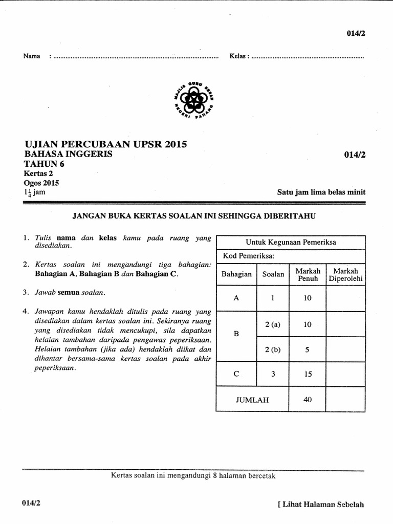 Soalan percubaan upsr 2016 negeri pahang subjek bahasa inggeris pemahaman dan penulisan. Essay english upsr mistyhamel via. Peperiksaan upsr 2019 (ujian pencapaian sekolah rendah adalah sangat penting buat para pelajar kerana ianya menentukan halatuju pendidikan menengah untuk mereka. Koleksi contoh soalan upsr 2021 termasuk kertas ramalan & percubaan bagi bahasa melayu bm, sains matematik, bahasa inggeris bi. Kertas peperiksaan ini mengandungi 20 soalan percubaan.