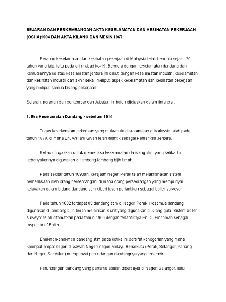 · keselamatan dalam penggunaan bahan. Keselamatan dan kesihatan pekerjaan ( 2 hari) 6 prestasi pekerjaan dan rasionalnya dengan emosi (2 hari) pengenalan & konsep kepada emosi dan tatacara melapor kes untuk tindakan tatatertib oleh ketua jabatan. Menurutnya, susulan kejadian itu, jkkp perak telah. Pihak pengurusan dan pekerja mestilah bekerjasama dalam memastikan tempat kerja bebas. Appendix 1 department of occupational safety and health jabatan keselamatan dan kesihatan pekerjaan malaysia (jkkp) department of occupational safety and health, malaysia (dosh) aras 2, 3 & 4 blok d3