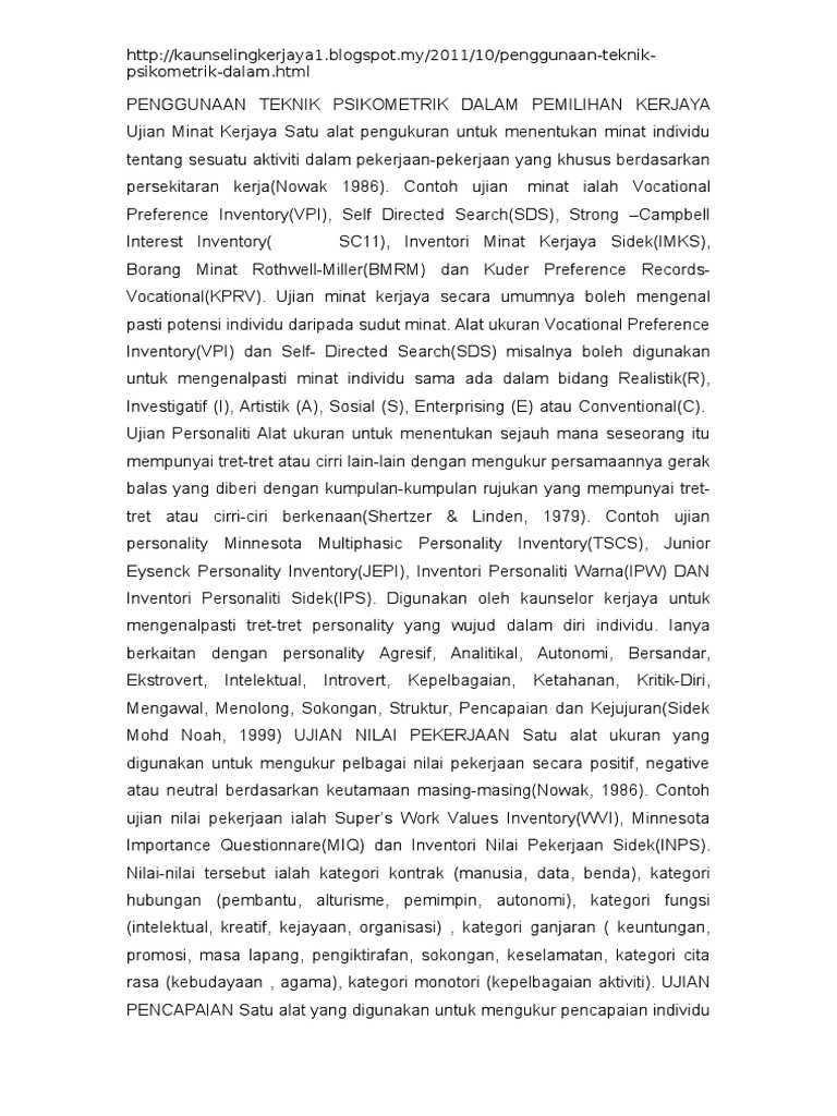 Kaunseling kerjaya kuliah 1 definisi dan sejarah definisi istilah kerjaya (career) merujuk kepada perkembangan kerjaya menurut counseling association ialah; Ketahui dan ambillah ujian ini free online! Soal selidik minat kerjaya john l. Proses mengenal diri menggunakan teknik psikometrik ujian minat kerjaya jenis ujian : Holland, ph.d alih bahasa oleh sidek mohd noah, ph.d bahagian a :